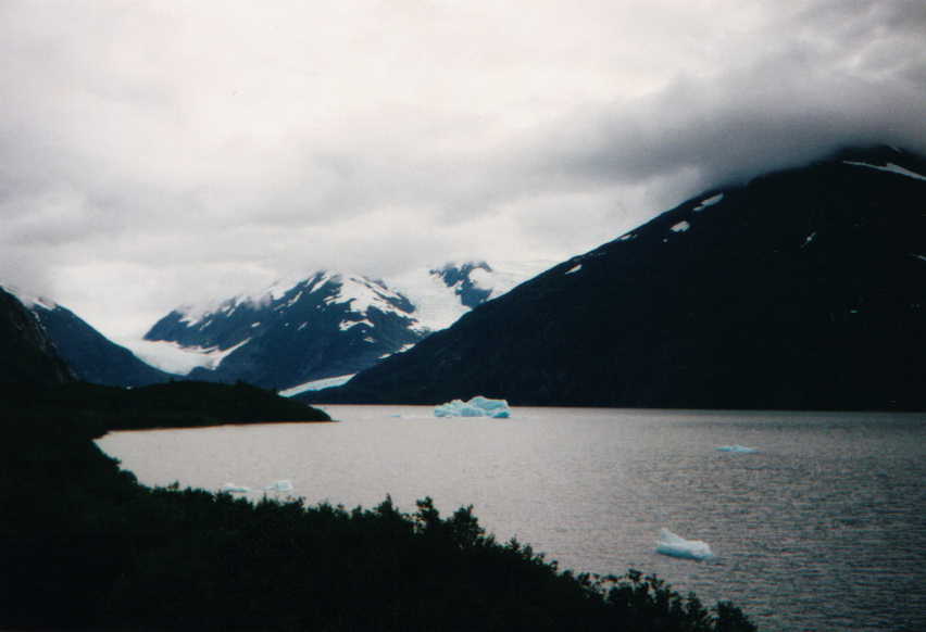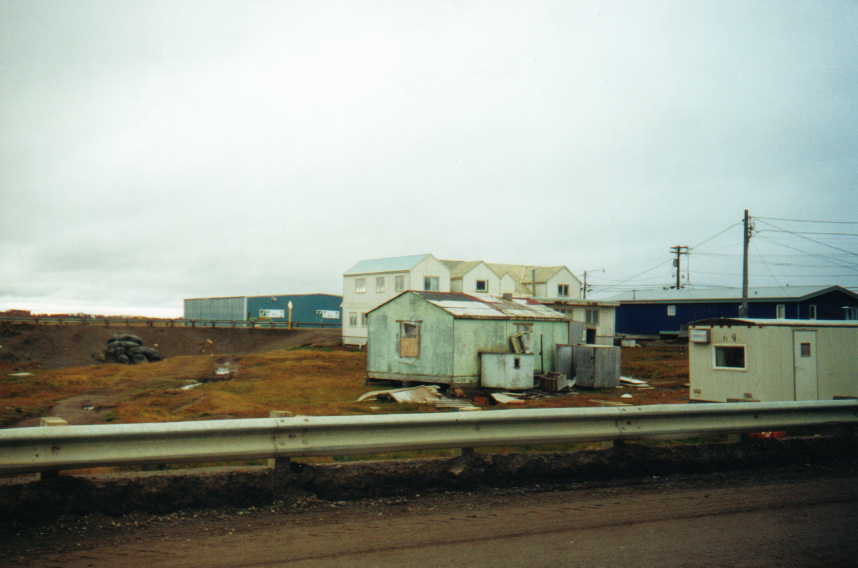 Although I've taken several short, weekend trips over the past several years, I hadn't actually had a real vacation in over 6 years. Any time that I've been out of town for more than a few days at a time, it's been to visit family--which can be enjoyable, but can also be very draining. Now that I am working, I actually had some time to plan a vacation. All the pieces began to fall into place--first, we were moving offices at work so got I 2 days off (creating a four-day weekend). Then, I had 2 "floating holidays" that I needed to use before the end of the year, and finally, I had more than enough Alaska Airlines frequent flier miles for a free trip. I have always wanted to visit the Arctic, and Barrow, Alaska seemed the natural choice. It is the farthest north location in the United States, and is surprisingly large (at 4,200 residents) for such a place. As the seat of the North Slope Borough, modern services are widely available; the only really limiting factor to visiting is the eye-popping expense (starting at around $900) of plane tickets. This should not be surprising; the only way in or out is by plane, and Alaska Airlines has a near-monopoly on commercial flights (there are only a couple of very small bush airlines that fly to neighboring Arctic communities). However, with the free tickets, cost was no longer a limiting factor. With some creative shuffling of dates, I arranged to first fly to Fairbanks, spend several days there, and then continue to Barrow. In Barrow, I'd stay at the Top of the World Hotel overnight, do the tour the next day, and finally return to Seattle via the red-eye from Anchorage (arriving bright and early at 6am). I picked up my tickets a month in advance, made a reservation for a rental car, and I was ready to go. Or so I thought. Three days before I was ready to leave, Alaska Airlines had a webspecial from Orange County to Anchorage, for only $319. Of course, I had to inform my friend Barkode of this, and he immediately purchased a ticket. It then became necessary to re-arrange my travel accordingly. Fortunately, this was pretty easy to do--Alaska Airlines is remarkably lax about changing frequent flier tickets once they have been issued. Since my final desination wasn't changing, it wasn't a problem to put me on a flight through Anchorage rather than Fairbanks (the flight from Anchorage to Barrow was the same one that I would have boarded in Fairbanks, anyway). I also discovered that the rate for a rental car was less for a week than for 6 days, so I pushed my return back a day in order to give me an even 7 days on the rental car. Finally, I arranged to arrive in Anchorage in the afternoon, because I could then avoid paying an extra day on the rental car (I'd be returning it in the afternoon). All went as planned. Barkode was exhausted when he arrived at Sea-Tac Airport, because he had been up for over 30 consecutive hours and had driven round-trip between Burbank and San Jose prior to flying north. We were on flights only an hour apart, so I flew to Anchorage and picked up the car, then drove to the airport and (after some difficulty locating him) retrieved Barkode. We then found a thoroughly unmemorable and overpriced bed and breakfast to stay in (Anchorage hotel rooms fill up fast). The only worthwhile component of the bed and breakfast was the owner's dinner recommendation. The Moose's Tooth was excellent, and after eating dinner, we planned the following day. I had previously booked tickets on the Alaska Marine Highway from Whittier to Valdez, and accomodations in Whittier. Whittier is a very small town on Prince William Sound, which was previously only accessible by boat or train. Recently, the State of Alaska converted the old railroad tunnel to a multi-use tunnel (picture) that accomodates both cars and trains. It is only one lane wide, and has to be shared with the Alaska Railroad, so the times that it can be used (and in which direction) are limited. Fortunately, the state publishes the timetable on their Web site, so we looked it up and decided to use the 3:30 time slot. With that, we went to sleep. The drive from Anchorage to Whittier traverses Turnagain Arm, which is surrounded on both sides by pristine, mountainous wilderness. It is a very scenic drive. The highway came to the Portage Glacier junction about 60 miles beyond Anchorage, and we turned (although uncertain that we were going the right way). This took us immediately past the Portage Glacier, which feeds a lake and is a spectacle straight out of vacation brochures. This also got Barkode very interested in glaciers. The tunnel was open on schedule, and we arrived in Whittier after the slow drive through. Whittier is, in a word, bizzare. All of its residents live in one of two Army surplus buildings; one is called Begich Towers, and is 14 stories tall; the other is a two-story building called Whittier Manor. During World War II, Whittier was a top-secret, strategic ice-free military port and installation. The military base lived on into the 1950s, when it was abruptly closed and returned to public use. One very large, hulking building called the Buckner building was abandoned; the other building (Begich Towers) was converted to condominiums, and is the home of most residents. Once called the "city under one roof," because it had a movie theatre, bowling alley, and every other service expected in a major city, the Buckner building now lies vacant and vandalized. A businessman from Anchorage purchased the building from the federal government (envisioning turning it into a "prison under one roof"). After he gutted the building, he went bankrupt, and the building is now owned by a consortium of his creditors, who, unable to agree among themselves on what to do with it, have left it to the elements. When we got to Whittier, we first went to the harborside office of June's Bed and Breakfast, where I'd reserved a room. To our dismay, nobody was in the office. 2 hours later, there was still 
