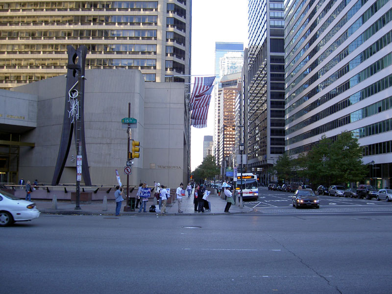Kerry campaigners urged motorists to demonstrate their support. The square was a chorus of honks.